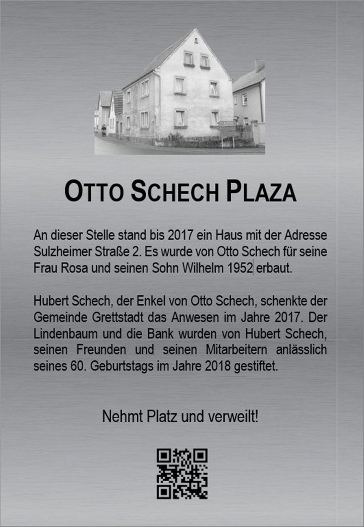 Hubert Schech, der Enkel von Otto Schech, schenkte 2017 der Gemeinde Grettstadt das Anwesen. Die großzügigen Geschenke seiner Freunde und Rodenstock Mitarbeiter zu seinem 60. Geburtstag machten es Hubert Schech 2018 möglich, dass ein Lindenbaum gepflanzt und eine Bank